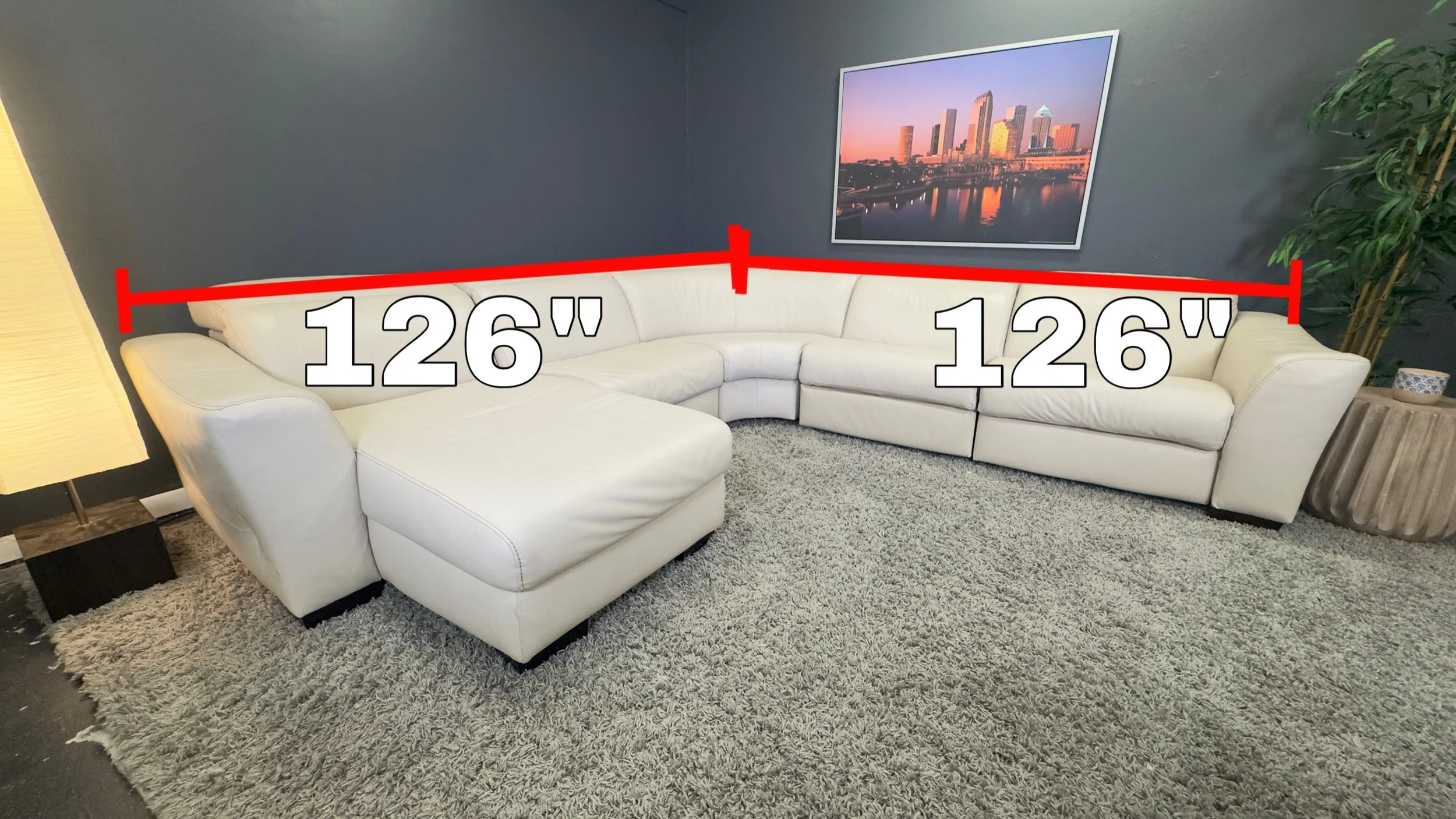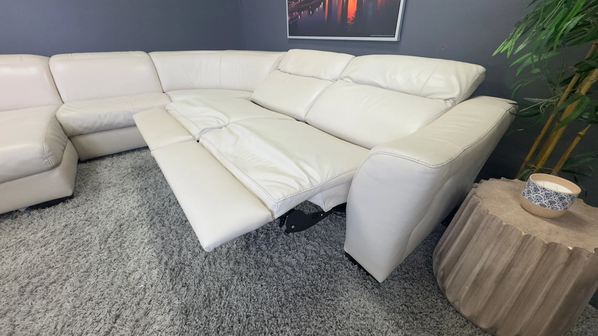 Beautiful Natuzzi modular leather Power Reclining sectional. This is a large high end Italian designed sectional with adjustable headrests and power reclining seats for ultimate comfort.